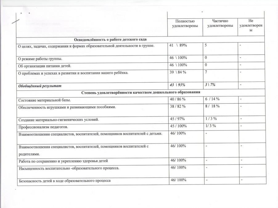 Справка о результатах родительского опроса